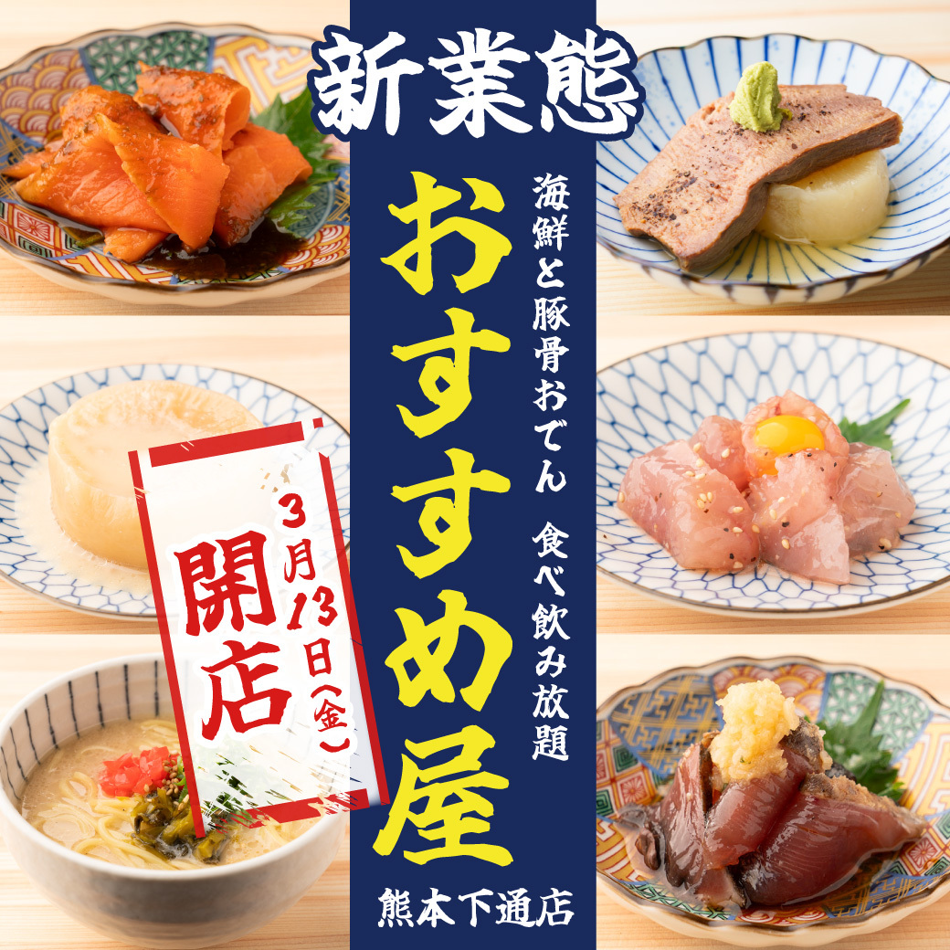 【船橋店】おすすめ屋船橋店がリニューアル!豪華海鮮や九州豚骨おでんが3000円で食べ飲み放題!